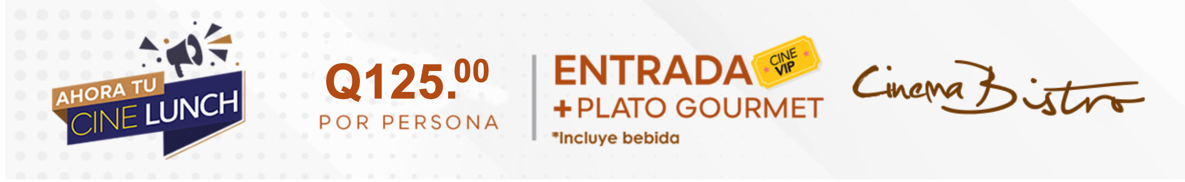 Disponible todos los días en cualquier función de #CinemaBistro Fontabella. Incluye 1 entrada 2D + 1 plato gourmet (3 variaciones de plato) con bebida incluida. De venta en taquillas del cine.
